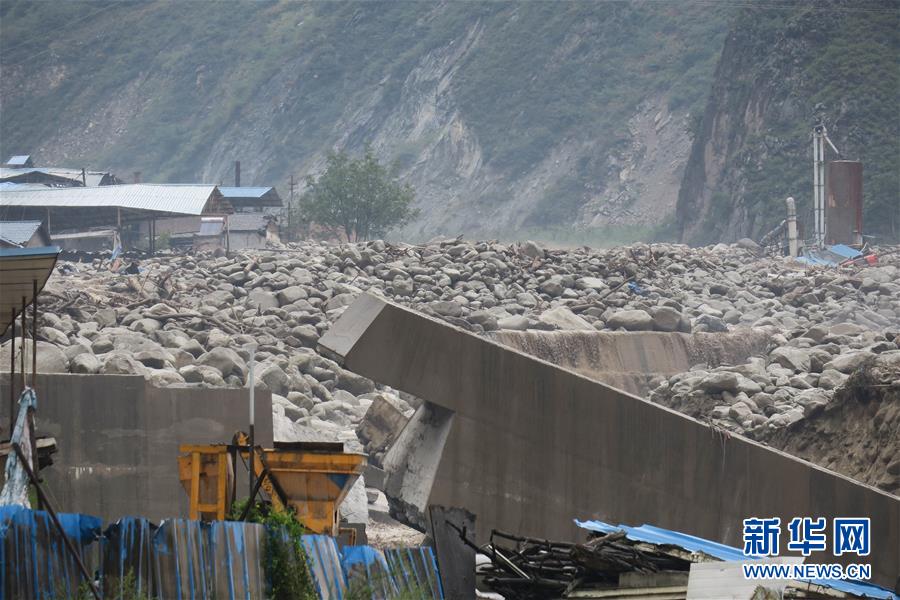 8月20日拍摄的汶川县板桥村泥石流灾害现场。 8月20日凌晨2时许,四川省阿坝州汶川县因强降雨致多个乡镇不同程度发生山洪泥石流灾害,多地道路、电力、通讯中断,造成人员伤亡。1名消防员在救援中牺牲。 新华社发 (唐盈 摄)